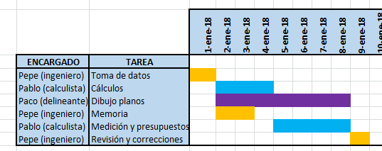 Podemos observar que al ser distintas personas las encargadas de realizar las diferentes tareas, estas se pueden solapar en el tiempo, siempre teniendo en cuenta que unas son dependientes de otras y por tanto dependerán entre sí para poder continuar con la siguiente fase.